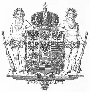 En vertu de l'annexe B, reproduite ci-après, de l'ordonnance précitée du , les petites armoiries du Royaume de Prusse (en allemand : Mittleres Wappen Preußens) comportaient (en 12) les armoiries du landgraviat de Hesse (en 12.a), de la principauté de Nassau (en 12.b) et de la seigneurie de Francfort (en 12.c).