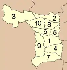 Suphanburi est subdivisée en 10 districts (amphoe) : Ces districts sont eux-mêmes subdivisés en 110 sous-districts (tambon) et 977 villages (muban).