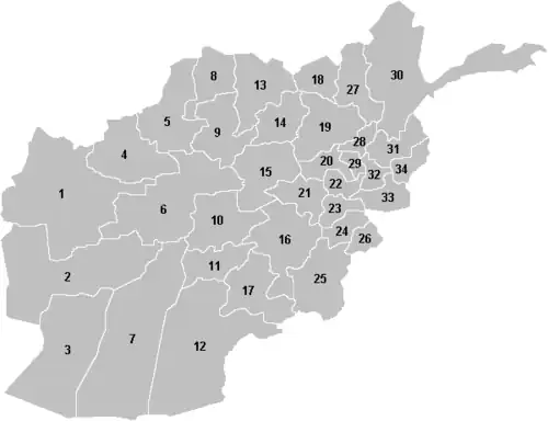 L'Afghanistan est subdivisé en 34 provinces, ou velayat :