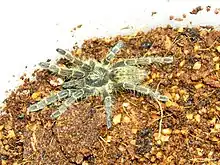 Elle est aussi connue sous le nom commun anglais "grey baboon spider" se référant à sa couleur grise à l'âge adulte.