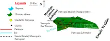 Le chef-lieu de la paroisse civile est la localité de Pueblo Nuevo éponyme de la paroisse civile. Les autres localités sont Café Negro, La Raya, Los Caobos, Machanguito, Machango, Nuevo Mundo et Puerto Escondido.