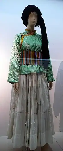 Dans Ninglang et Yongsheng, les femmes des Pumi portent souvent des vestes avec des boutons en bas d'un côté, des jupes longues et plissées et des ceintures larges multicolores. En raison du froid, une peau de chèvre est drapée au-dessus de leurs dos.