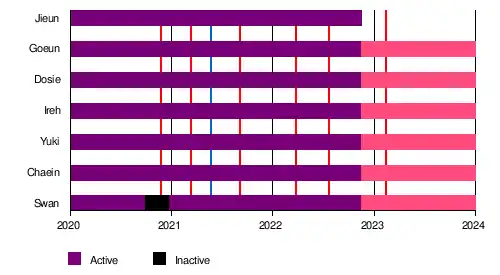 | Chaein | 채인 | Lee Chae Young | 이채영 | Chanteuse principale, rappeuse secondaire, danseuse, visuelle | ||