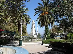 Construite par les troupes françaises du génie de l’expédition de Morée en 1829, la place centrale de Pylos se remarque immédiatement par son schéma géométrique triangulaire caractéristique, dont l'un des côtés ouvre la place théâtralement sur la mer et le port de Pylos et dont les deux autres côtés sont bordés par des galeries en arcades ou couverts rappelant l'architecture les places centrales des bastides du sud-ouest de la France et celles des villes des îles Ioniennes (comme à Corfou)[38]. Ces galeries abritent de nombreux petits marchés et commerces, ainsi que des cafés et restaurants traditionnels ou plus modernes. Leurs terrasses s’étendent pour la plupart sur la place elle-même, qu'ombragent plusieurs platanes centenaires. Au centre, entouré par deux majestueux Phoenix, se trouve un monument commémoratif de la bataille de Navarin, en forme d'obélisque et dédié à la victoire des flottes alliées et de leurs trois amiraux, le britannique Edward Codrington, le français Henri de Rigny et le russe Lodewijk van Heiden.