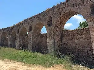 Au sud de la ville de Pylos, sur la route de Methóni, se trouve l'ancien aqueduc de Navarin, construit au XVIe siècle par les Ottomans afin de répondre aux besoins d'approvisionnement en eau du Néokastro. Composé par deux systèmes hydrauliques, il conduisait les eaux depuis les prises d'eau du plateau de Koubmeh (situé près de la ville de Chandrinoú à environ 15 kilomètres au nord-est de Pylos sur la route de Kalamata) et de Paléo Nero, (situé près du village de Palaiónero). Les deux systèmes s'associaient en un système unique que l'on peut encore observer de nos jours aux abords de Pylos dans le quartier de Kamáres. Ensuite, grâce à un conduit souterrain de l'aqueduc, les eaux pénétraient à l’intérieur de la forteresse pour y alimenter les fontaines du Néokastro[66],[67]. Tombé en ruines jusqu'en 1828, il est réhabilité en 1832 par les ingénieurs français du génie de l’expédition de Morée, et servira pour approvisionner Pylos en eau jusqu'en 1907[38].