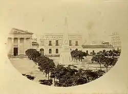 « La place de la Victoire, avec sa statue de la Liberté, au haut piédestal, était aux yeux de Seymour la partie la plus jolie de la ville ; Burton en revanche releva, concernant l’obélisque de brique emplâtrée, les rachitiques lilas de Perse, « purs poteaux en août », ainsi que tout l’entour, qui lui paraissait petit, pauvre et laid[6]. »