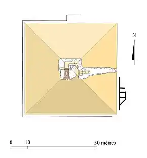 | Pyramide du culte | 15,8 m | ~10,5 m | 56°18′ | ||||||||||||||||