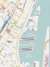 • Le Grand Quai du Port de Montréal[4] (appelé jusqu'en 2018 Quai Alexandra), ancienne digue qui reliait l'îlot Normandin au port ; il accueille la gare maritime Iberville où accostent des bateaux de croisière de grande taille, tel le AIDAbella[5]. Le 27 mai 2023, la Tour du Port de Montréal est ouverte au public sur le quai, conçu par Provencher Roy (en)[6].