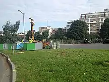 Cette place est franchie par le pont ferroviaire de la ligne 2 du tramway, qui reprend à cet endroit le tracé de l'ancienne ligne de Puteaux à Issy-Plaine.