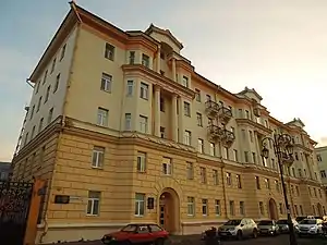 Au n° 18, l'on trouve un grand complexe construit en 1927-1928 par Alexandre Yakovlev. C'est en 1925 qu'est fondée la Société des architectes contemporains qui publie dès l'année suivante Architecture contemporaine propageant les idées du constructivisme. Vers 1927, c'est une tendance prioritaire de l'architecture soviétique dont Yakovlev se fait l'écho, même s'il n'est pas partisan des extrêmes caractéristiques des constructivistes de « gauche ». Il respecte les canons de l'avant-garde de l'époque avec un minimum de moyens et utilise peu de pilastres, avec des façades asymétriques et une plate-forme d'observation au-dessus des escaliers, ce qui donne une certaine variété à la façade[37].