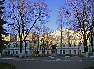 Un hôpital militaire y est installé pendant la Première Guerre mondiale. Après la révolution d'Octobre, les bâtiments sont donnés en janvier 1918 à la Tchéka avec un régiment de cavalerie, puis en 1922 à des institutions techniques et plus tard à la faculté technique et à la faculté de chimie de l'Université et enfin à partir de 1930 c'est un des bâtiments de l'Université technique de la ville[36].