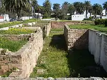 Les fouilles sous la direction de Friedrich Rakob ont mis en évidence une occupation du site du Ve siècle av. J.-C. à l'époque byzantine[2]. Les habitations sont alors modestes et un espace d'environ trente mètres les sépare d'un rempart bordant le rivage[3]. Une rue perpendiculaire au rivage aboutissait à une porte ouverte dans la muraille vers la mer[3]. Au pied du rempart, il y avait une grève.