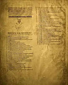 Le Codex Vaticanus utilise le plus ancien système de division textuelle des Évangiles. Sinaiticus, Alexandrinus et Ephraemi ont les sections ammoniennes avec des références au canon eusébien . Le Codex Alexandrinus et Ephraemi Rescriptus utilisent également une division selon des sections plus grandes - κεφάλαια (kephalaia, chapitres ). Le Codex Alexandrin est le premier manuscrit qui utilise la κεφάλαια[7]. Le Vaticanus a un style d'écriture plus archaïque que les autres manuscrits. Il n'y a pas d'ornementation ou de lettres initiales plus grandes dans Vaticanus et Sinaiticus, mais il y en a dans le Codex Alexandrin. Le Vaticanus n'a aucune introduction au Livre des Psaumes, qui est devenu un standard après 325 apr. J.-C., contrairement à Sinaiticus et Alexandrinus. Les ordres de leurs livres diffèrent[8].