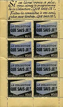 « Que sais-je ? » est une collection de l'édition française, fondée en 1941 par Paul Angoulvent et publiée par les Presses universitaires de France.