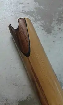 L'autre matériau souvent utilisé, c'est le bois précieux. Étant donné la complexité qu'implique la production d'un tube ouvert, parfaitement cylindrique et de parois assez fines à partir d'un bloc de bois, ce matériau est utilisé principalement par les charpentiers ou ébénistes qui ont une expérience du maniement des machines-outils de tournage sur bois, et par les luthiers spécialisés[35].