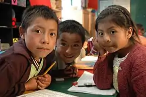 Le quiché[5] (ou k'iche' en quiché) fait partie de la famille des langues mayas. Il est encore parlé par de nombreux Quichés, bien que la majorité de la population possède aussi des rudiments de langue espagnole, sauf dans quelques zones rurales isolées.