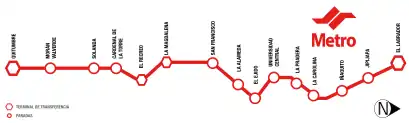 Il comprend une seule ligne de 15 stations, traversant la ville du sud au nord, de Quitumbe à El Labrador.