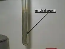 Un dépôt d’argent se forme alors sur les parois évoquant un miroir. Cette réaction s’appelle aussi « test du miroir d'argent ».