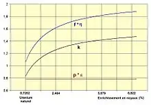 L'uranium 235, certes préférentiellement fissile en neutrons thermiques, l'est également en neutrons rapides et même il l'est davantage que l'uranium 238 (section efficace en gros 1,5 à 2 fois plus élevée). À priori une augmentation de l'enrichissement doit conduire à une augmentation de ε, ce qui est cohérent avec la proposition ci-dessus puisqu'une augmentation de l'enrichissement implique une diminution de la modération. Cet effet doit cependant rester modéré.