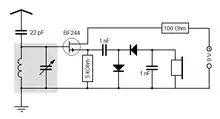 Le détecteur prend l'énergie du préamplificateur à transistor à effet de champ (BF244) et non plus au circuit résonnant ce qui donne comme avantages: