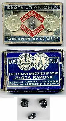 - Dès 1939 : Dans quelques pays occupés il y avait des confiscations des postes radios de la population ([8]). Ceci conduit des auditeurs particulièrement déterminés à construire leurs propres récepteurs à pyrite clandestins, car c'était un minerai facile à trouver, à ajuster, stable, suffisant depuis la France pour la diffusion de messages entre Londres et la résistance pendant la Seconde Guerre mondiale.