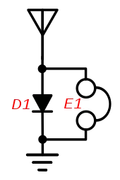 - L'antenne et la prise de terre sont essentielles. Ce sont elles qui permettent de recevoir la puissance électrique utile au fonctionnement de l’écouteur ou du casque (hormis le signal radio, il n'y a aucune source d'énergie et un courant ne se créera dans l'antenne que si celle-ci est reliée au sol).