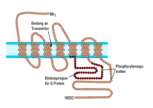La fixation de l'agoniste sur ce récepteur active, par modification de conformation, la protéine G qui lui est couplée. Celle-ci hydrolyse alors du GTP en GDP (d'où son nom de « G » pour « Guanine binding protein »). Cela provoque un deuxième changement de conformation, cette fois au niveau du canal ionique associé au complexe récepteur-protéine G en question. Ce canal devient perméable à l'ion potassium. Du K+ peut donc sortir du compartiment post-synaptique, créant ainsi le courant ionique nécessaire à la propagation du signal. Ce récepteur est dit « à messager unique » car il ne fait intervenir que la protéine G comme intermédiaire. Il est impliqué dans la voie de transmission rapide : l'effet est obtenu 30 à 100 ms après fixation du récepteur[1].