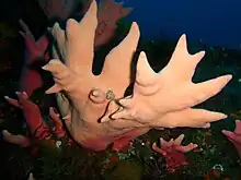 Plus on descend plus les coraux dominants sont des coraux mous qui abritent eux-mêmes une communauté diversifiée d’autres espèces (mollusques, crustacés et autres créature)[1].