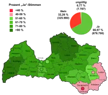 À la suite de ce résultat, la Lettonie signe le traité d'Athènes en 2003 et intègre l'Union européenne le , lors du cinquième élargissement de l'Union européenne.