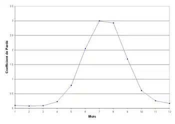 La pointe de débit arrive donc plus tard – en été – que dans le régime nival – au printemps.