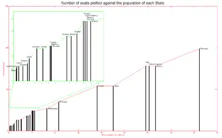 - la limite maximale de sièges : aucun État ne peut obtenir plus de 96 députés (selon le traité de Lisbonne)