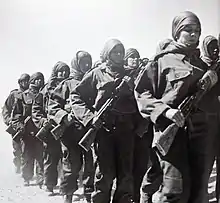 Après le départ des troupes espagnoles, les troupes marocaines et mauritaniennes se trouvent rapidement confrontées à un mouvement autochtone en faveur de l'indépendance du territoire, le Front Polisario, soutenu par l'Algérie et la Libye.