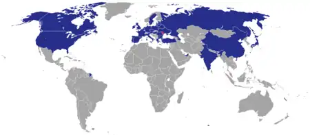 Située aux limites des sphères d'influence de deux superpuissances à la fois partenaires et antagonistes, la Moldavie se trouve dans la zone d'influence russe et fait toujours partie de la CEI, mais aux frontières orientales de l'Union européenne et de l'OTAN[14] : elle est aussi membre de l'Organisation pour la démocratie et le développement (GUAM), du partenariat pour la paix de l'OTAN depuis le , de l'Accord de libre-échange centre-européen et du Partenariat oriental de l'UE depuis 2009[15] et elle a un accord d'association avec l’UE depuis le .