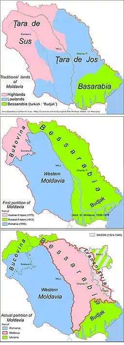- Région de Moldavie, Principauté de Moldavie, République démocratique moldave, République socialiste soviétique moldave