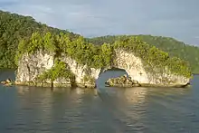 Les Palaos regroupent un ensemble d'îles faisant partie des îles Carolines. Pourtant, du point de vue géologique, les Palaos constituent un archipel indépendant, appartenant à une ligne de récifs coralliens d'orientation différente (du nord-nord-est vers le sud-sud-ouest) du reste des îles Carolines (plutôt est-ouest). De plus, ces dernières sont nettement séparées des Palaos à leur extrémité ouest par une fosse océanique pouvant atteindre par endroits 7 000 mètres de profondeur. Par conséquent, ces deux archipels ne sont pas non plus sur la même plaque tectonique[15] : les Palaos (avec Yap) appartiennent à la plaque philippine et marquent une zone de plaques convergentes, tandis que les autres Carolines dépendent de la plaque pacifique et représentent (à l'exception de l'île Yap) la partie émergée d'une ride océanique (Caroline islands ridge), non loin d'une limite de deux plaques transformantes. Enfin, les Palaos se situent en mer des Philippines, tandis que les îles Carolines font partie de l'océan Pacifique.