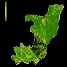 La forêt tropicale humide s'étend sur près des deux tiers du territoire de la république du Congo[27], ce qui en fait le quinzième pays au monde par la proportion de couvert forestier.