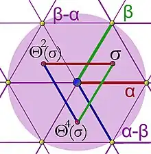 Il existe une unique manière de prolonger à tout le réseau une isométrie du groupe orthogonal du réseau hexagonal de dimension 2. Pour la moitié des éléments du groupe, sur δ ce prolongement est l'identité. Pour l'autre moitié, ce prolongement est l'homothétie de rapport −1. Le groupe orthogonal est isomorphe à D12. Avec les rotations du cube, ces deux géométries sont les seules à contenir une rotation d'un tiers de tour. Aucun de ces deux groupes n'est commutatif.