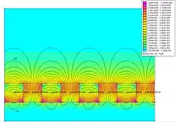 - Il n'y a pas de champ magnétique parasite produit (dans un cas idéal) sur le côté opposé. Ceci aide au confinement des champs qui est une difficulté habituelle de la conception des structures magnétiques.