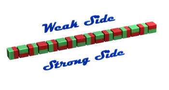 La disposition des aimants permanents (sur la face avant ; sur la gauche, vers le haut, à droite et vers le bas) peut être répétée indéfiniment avec le même effet. L'effet de cette disposition est approximativement similaire a un ensemble d'aimant en fer à cheval adjacents, avec les pôles de même signes en contact.