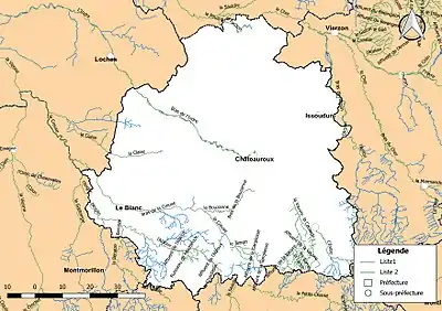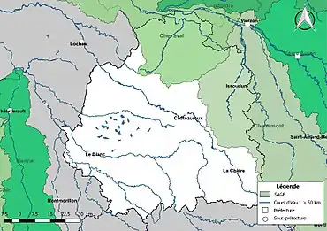 | Principaux cours d'eau | Cher, Indre, Creuse, Gartempe, Arnon, Anglin, Claise, Bouzanne et Benaize. |