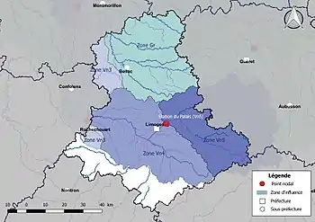 Leur détermination repose principalement sur l’observation des équilibres ou déséquilibres actuels et sur l’expérience des situations de crise antérieures. Le département de la Haute-Vienne est découpé en six zones nodales se référant à six points nodaux dont un seul est dans le département. Leurs caractéristiques sont les suivantes[35] :