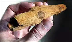 structure naturelle gréseuse et ferrugineuse en forme de racine creuse et ramifié, avec formes de nodules, trouvée dans les couches de sable du Plateau à environ 2 m sous le niveau du sol lors du creusement de la VNVA (Voie nouvelle de la vallée de l'Aa) en déblai-remblai. La forme de ces structures évoque des racines fossiles ou des galeries animales fossilisées, mais il pourrait aussi s'agir d'une structure laissée par la foudre. Certains de ces "tuyaux" contiennent un sable très blanc. Origine à confirmer