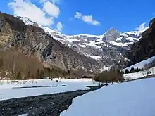 le site du Cirque Fer-à-cheval enneigé avec le Pic de Tenneverge (2 989 m)