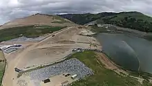 La conception du barrage de remplacement permet une expansion future de la capacité, et le noyau est plus large que nécessaire initialement. La conception permet d'augmenter la hauteur de 46 m, pour quadrupler la capacité initiale de 120 000 000 m3[7]. À l'achèvement du barrage de remplacement, un tiers de l'ancien barrage a été enlevé pour permettre au réservoir d'être mis en réserve par le nouveau barrage à la place.