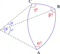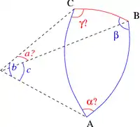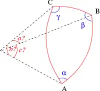 - En effet, comme le rappelle l'abbé Boscovich : « les trois côtés ne sont pas déterminés par les trois angles parce que leur somme y étant toujours égale à deux angles droits, la détermination des trois angles ne donne rien de plus que la détermination de deux seuls » (Opera Pertinentia ad Opticam et Astronomiam, Volume 4, 1785, p. 316)