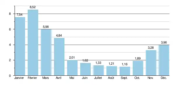 Le module observé à cet endroit durant cette période était de 3,77 m3/s[2].