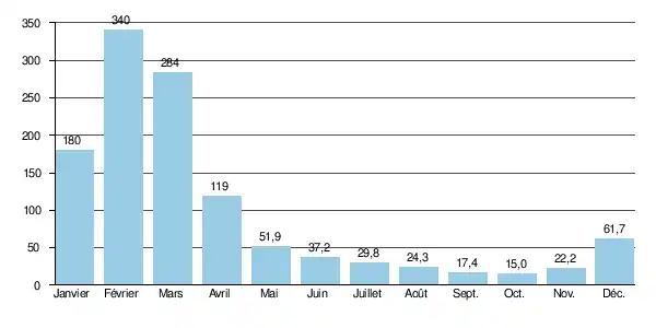 La lame d'eau écoulée dans le bassin versant atteint ainsi le chiffre de 121 millimètres par an, ce qui peut être considéré comme élevé dans cette région par endroits desséchée.