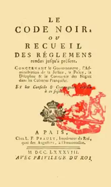 - Selon déclaration du Roi du 9 août 1777 « sur la police des noirs, enregistrée au Parlement de Paris, le 27 du même mois. », et s'appuyant sur ses lettres patentes du 3 juillet 1777, cit. par Des Essarts in Causes célèbres, curieuses et intéressantes de toutes les Cours du Royaume, tome XXXIV, p. 99.