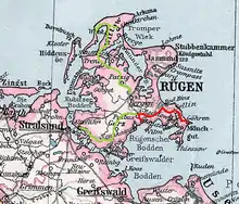 Il n'y avait pas de liaison à voie étroite entre les deux parties du réseau. Une particularité était le service de ferry entre Wittower Fähre et Fährhof qui était effectué par les bateaux Wittow et Jasper von Maltzahn (renommé par la suite en Bergen)[2],