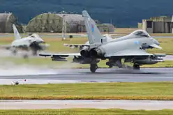 La première unité de Typhoon, le No. 6 Squadron, a été transférée de la RAF Leuchars à Lossiemouth le 20 juin 2014. Neuf avions sont arrivés en formation sous la forme d'un 6[64]. Le No. 1 Squadron RAF a suivi le 8 septembre 2014, lorsque la responsabilité de la Quick Reaction Alert (Nord) a été transférée de la RAF Leuchars à Lossiemouth[65].
